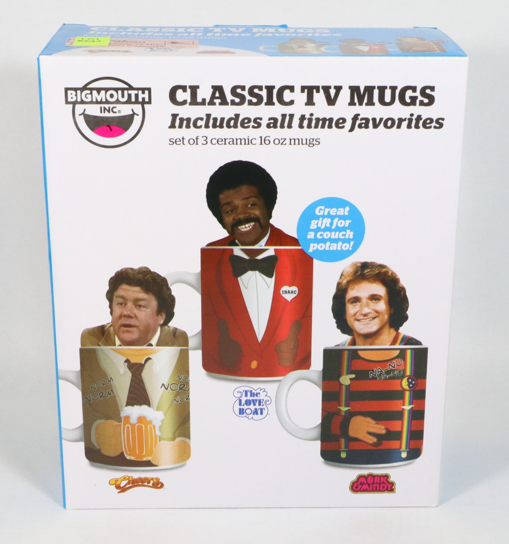 LOVE BOAT), MORK (MORK AND MINDY) HAND WASHING RECOMMENDED 16OZ MUGS