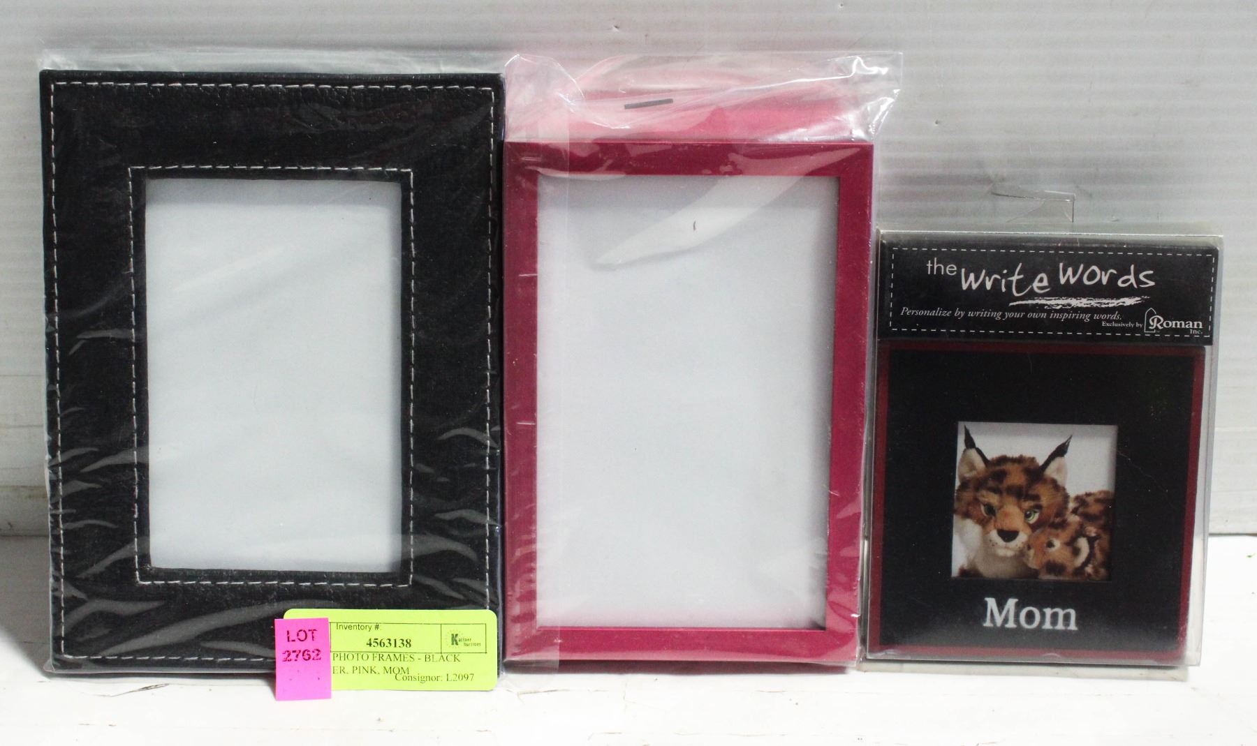 NEW 3 PHOTO FRAMES - BLACK LEATHER, PINK, MOM