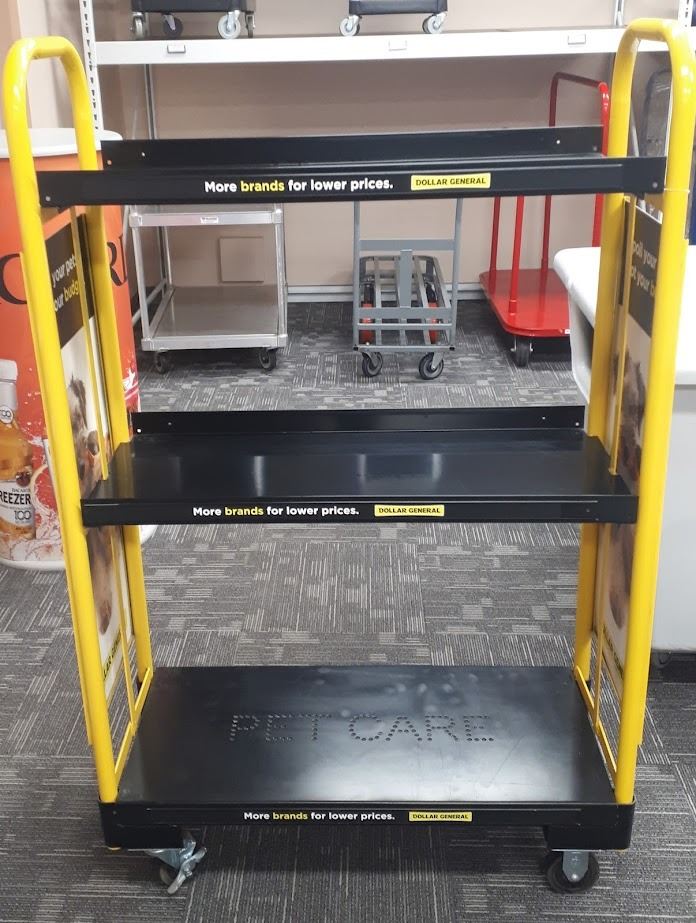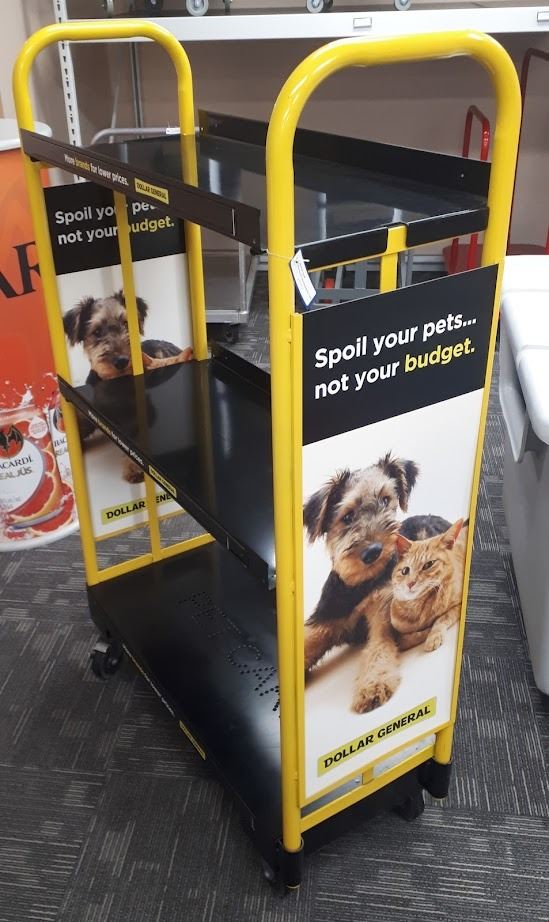 RACK M# 74-PUR-1638AC. 38" X 16" X 60", 20.5" BETWEEN SHELVES. REMOVABLE SHELVES. AD/PRICE SLIPS. ON CASTERS.