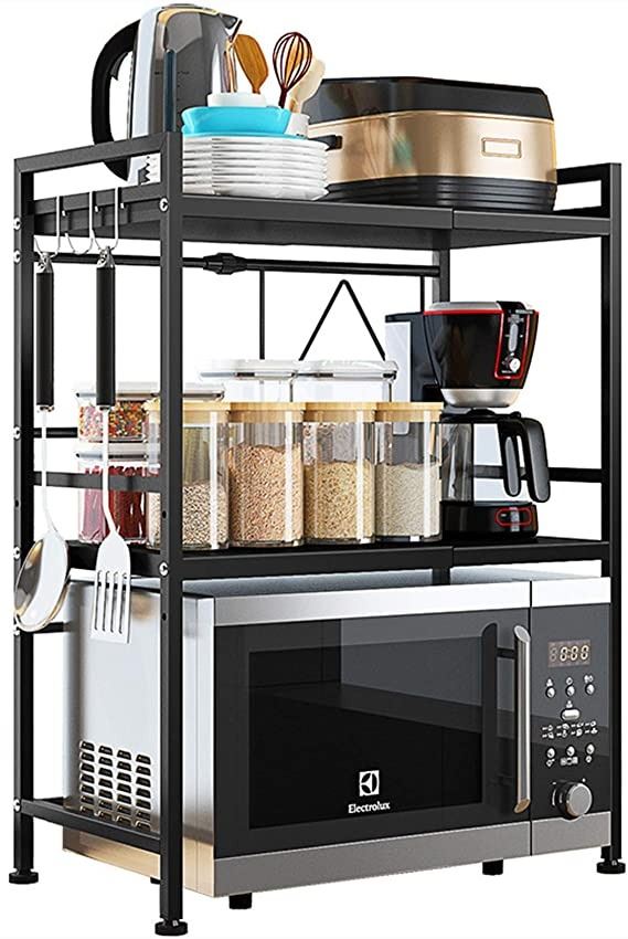 NEW 3 TIER EXPANDABLE MICROWAVE SHELF, BLACK