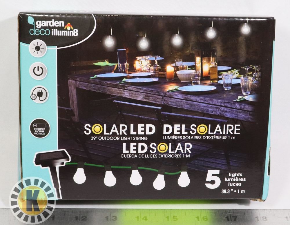 NEW 39"SOLAR OUTDOOR LIGHT STRING, 5 LIGHTS ON ST