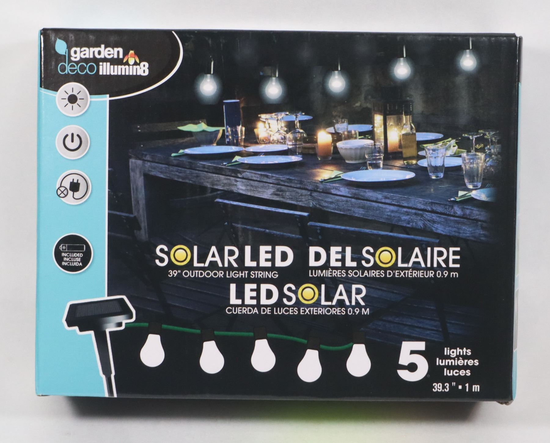 NEW 39"SOLAR OUTDOOR LIGHT STRING, 5 LIGHTS ON