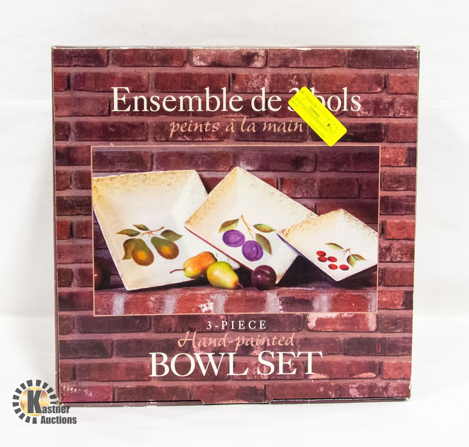 NEW 3PC HAND PAINTED SET OF BOWLS