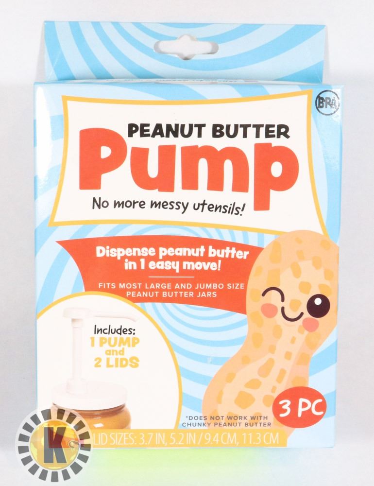INCLUDES 1 PUMP AND TWO LIDS. FOR USE WITH LARGE AND JUMBO SIZE PEANUT BUTTER JARS