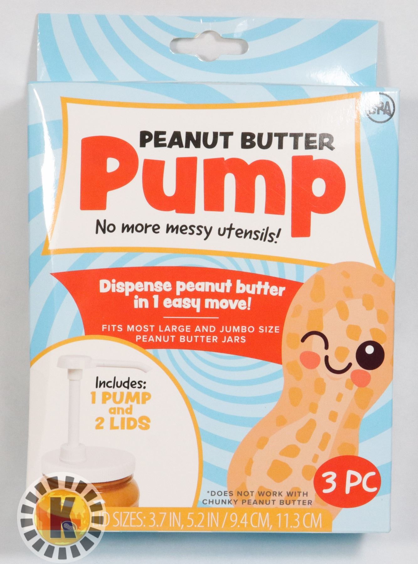INCLUDES 1 PUMP AND TWO LIDS. FOR USE WITH LARGE AND JUMBO SIZE PEANUT BUTTER JARS