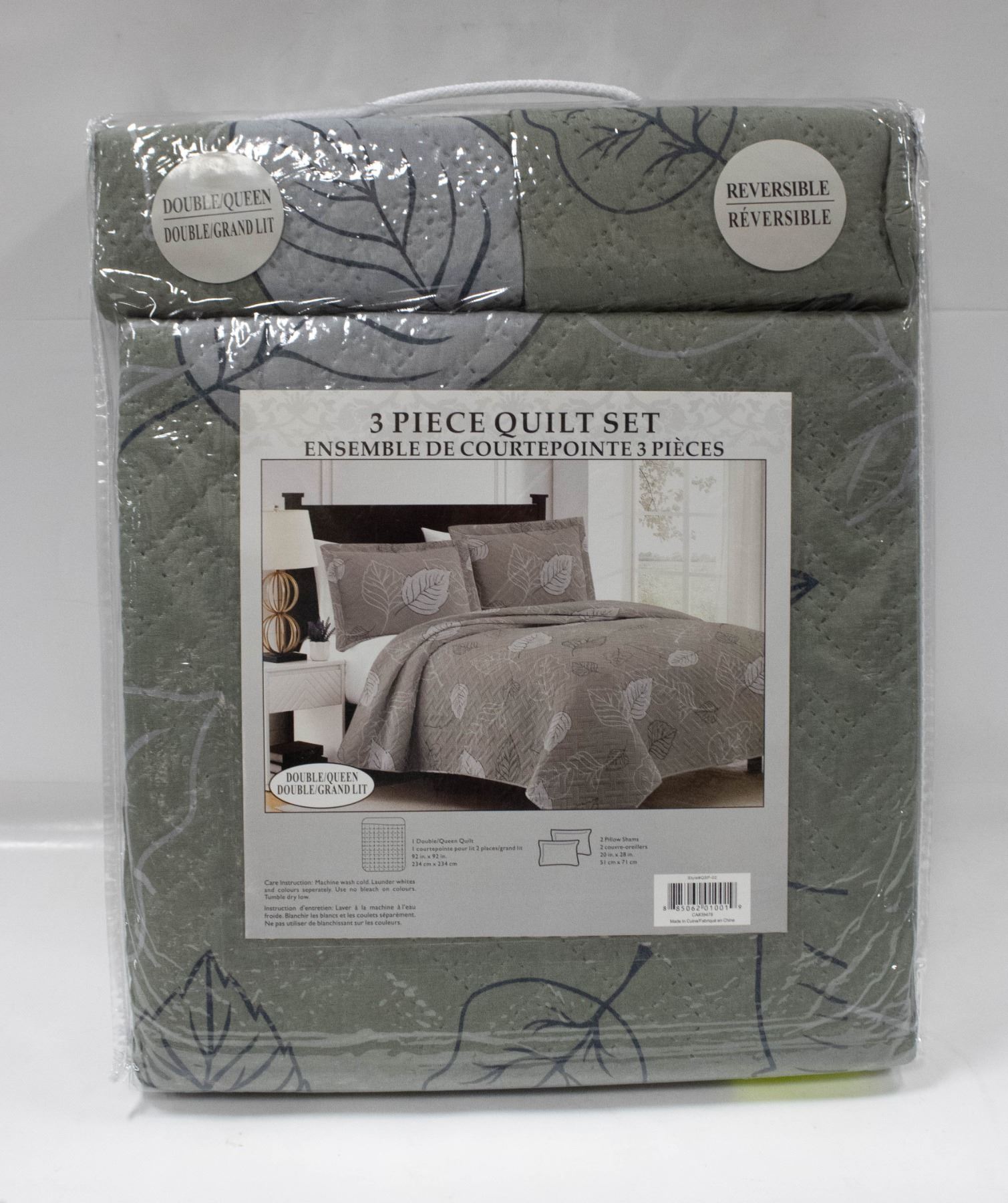 NEW 3PC QUILT SET DOUBLE/QUEEN SIZE REVERSIBLE