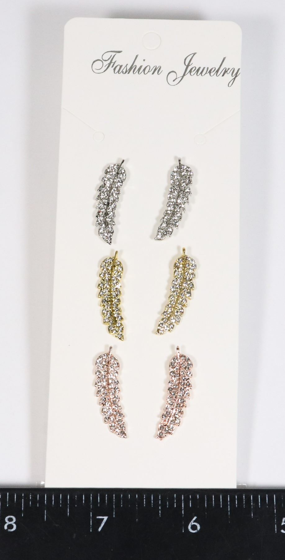 NEW 3PC SET OF LEAF RHINESTONE EARRINGS