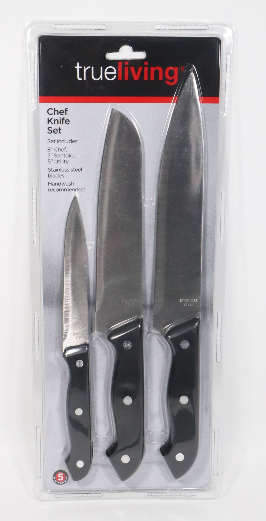 SET INCLUDES 8" CHEF, 7" SANTOKU, 5" UTILITY
