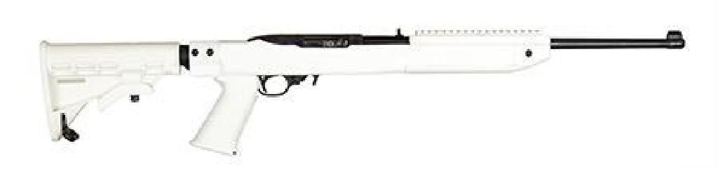 Specifications Metal Finish:Black Action:Semi-Automatic Caliber:22 Long Rifle Barrel Length:16.6" Capacity:10+1 Safety:Crossbolt OAL:37" Weight:5 lbs Stock Description:6-Position Tapco White Sights:Blade Front, Adjustable Rear Barrel Description:Hammer-Forged Twist:1:16" Hand:Right Stock Finish Group:Synthetic Metal Finish Group:Blued/Black