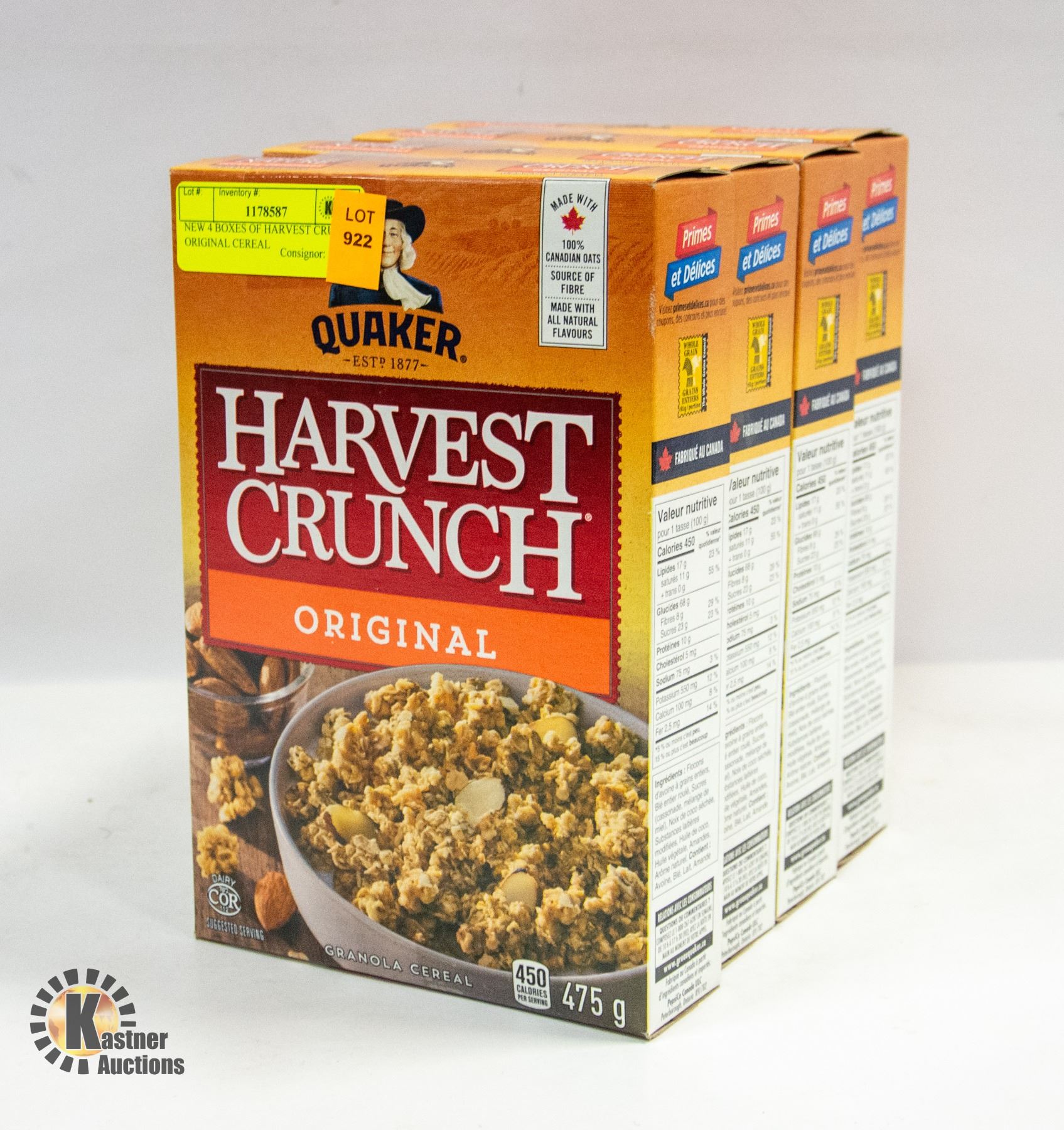 NEW 4 BOXES OF HARVEST CRUNCH ORIGINAL CEREAL