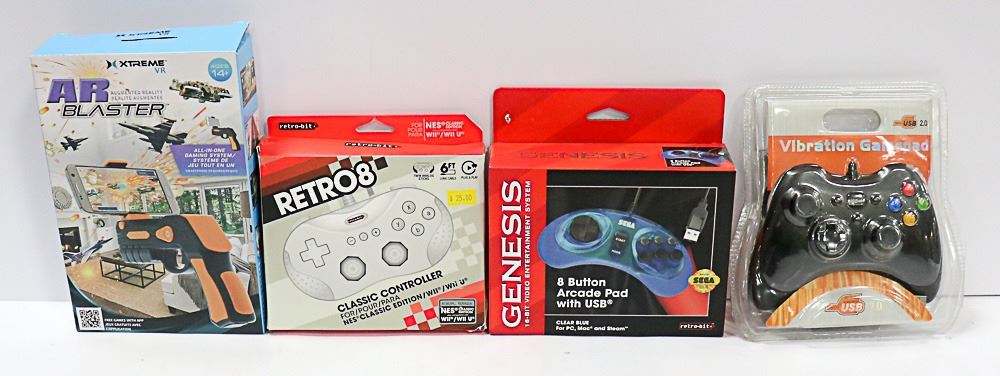 XTREME AR GUN REALITY BLASTER ALL-IN-ONE FOR SMART PHONE W/RETRO BIT (2) GENEUIS 8 BUTTON WITH USB & RETRO 8 CLASSIC CONTROLLER W/HI-SPEED UNIVERSAL VIBRATION GAME PAD