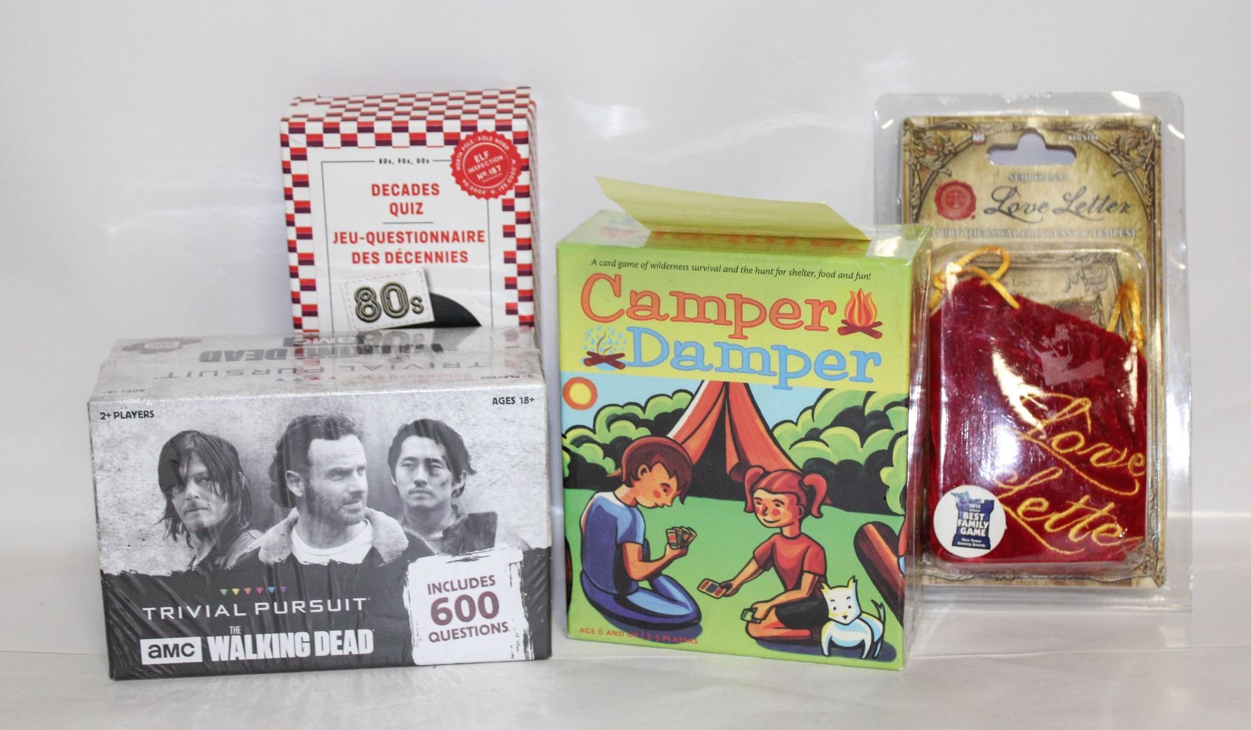 DECADES QUIZ 80'S/90'S, TRIVAL PURSUIT WALKING DEAD, SEJI KANAI LOVE LETTER CARD GAME **ALL ITEMS MUST BE REMOVED BY 5PM SATURDAY, MARCH 8TH 2025. ALL REMAINING ITEMS WILL BE SUBJECT TO A $6.00 PER DAY STORAGE CHARGE. ANY ITEMS REMAINING AFTER MONDAY, MARCH 24TH 2025 WILL BE CONSIDERED FORFEITED. NO REFUNDS WILL BE ISSUED FOR FORFEITED ITEMS. TO SCHEDULE A PICK UP APPOINTMENT CLICK HERE