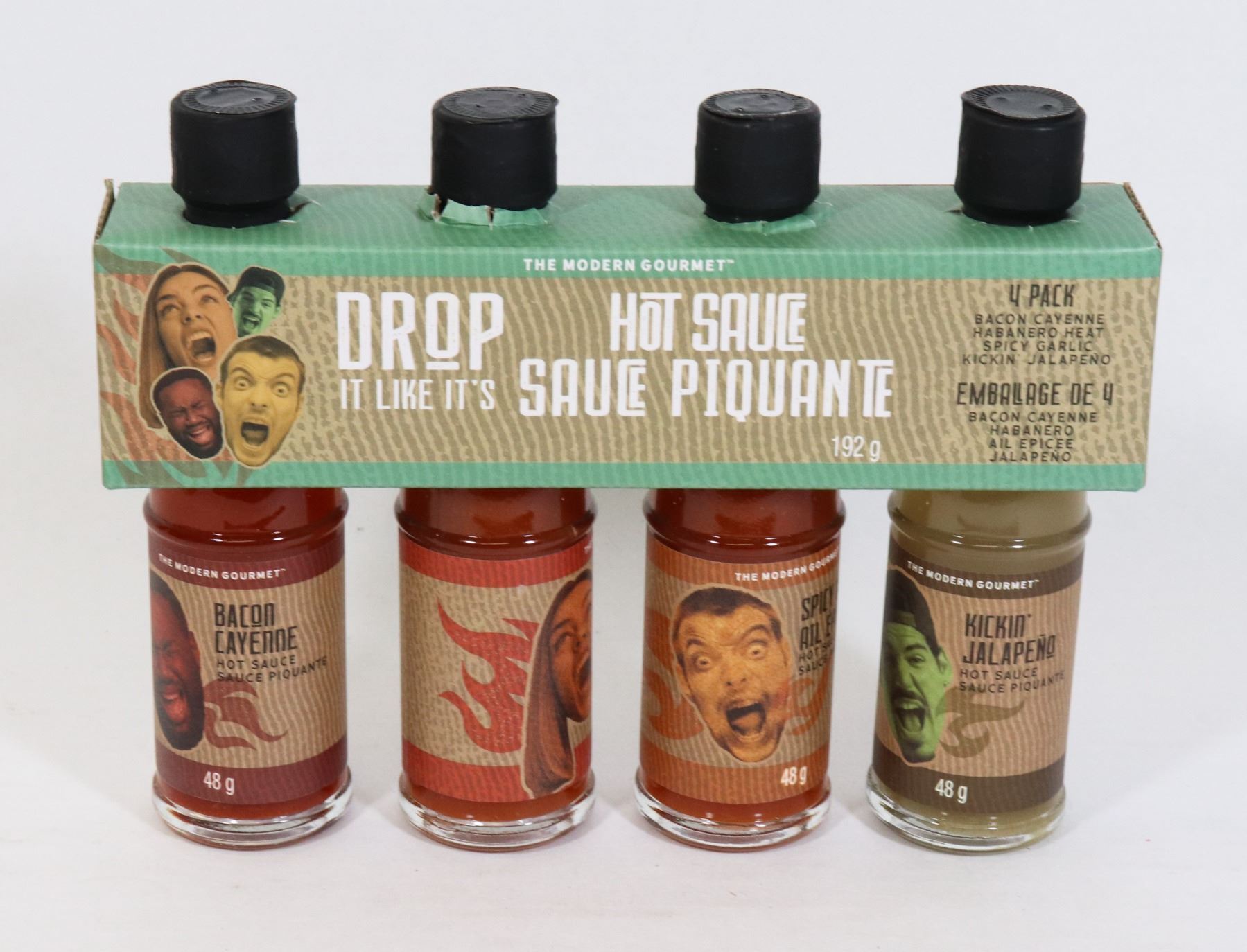 4 FLAVORS (BACON CAYENNE, HABANERO HEAT, SPICY GARLIC, KICKIN' JALAPENO) BEST BEFORE JULY 7 2026