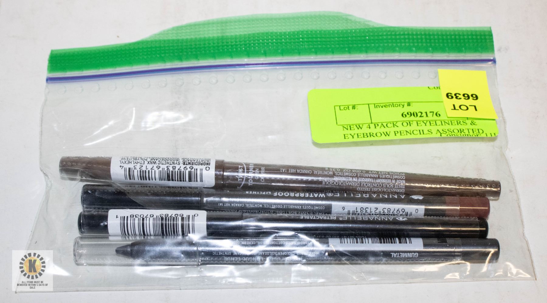 NEW 4 PACK OF EYELINERS & EYEBROW PENCILS ASSORTED
