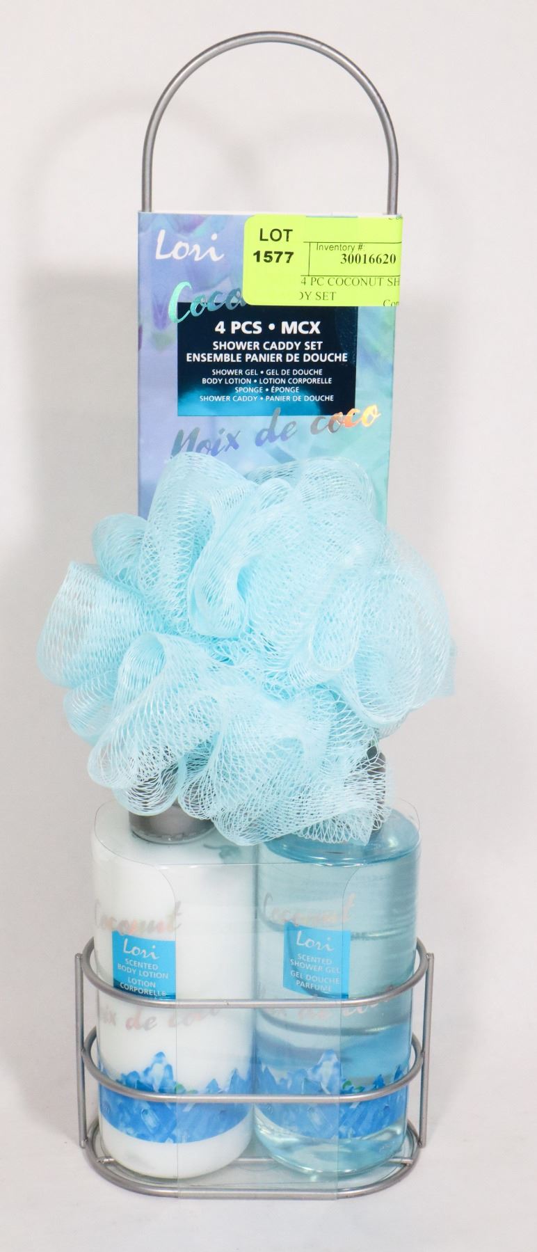SHOWER CADDY, SHOWER GEL, BODY LOTION AND SCRUBBER