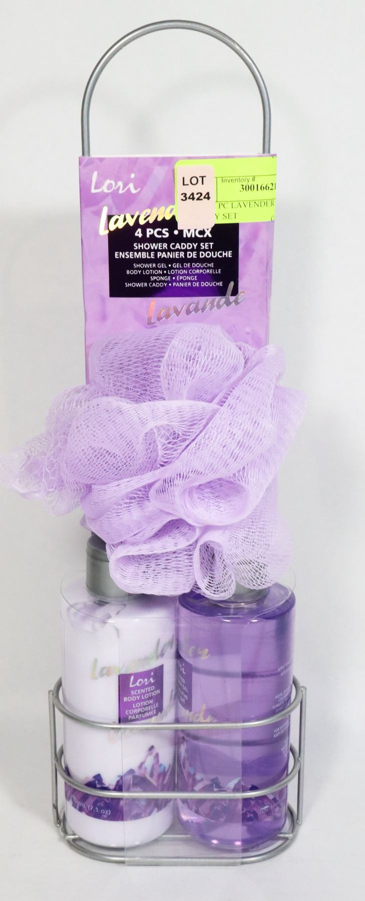 SHOWER CADDY, SHOWER GEL, BODY LOTION AND SCRUBBER