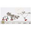 NECKLACE, EARRINGS AND 2 BRACELETS. 1 BRACELET IS PLAIN ONE HAS A CHERRY PENDANT FASHION JEWELRY***ITEM(S) LOCATED IN LETHBRIDGE ALBERTA