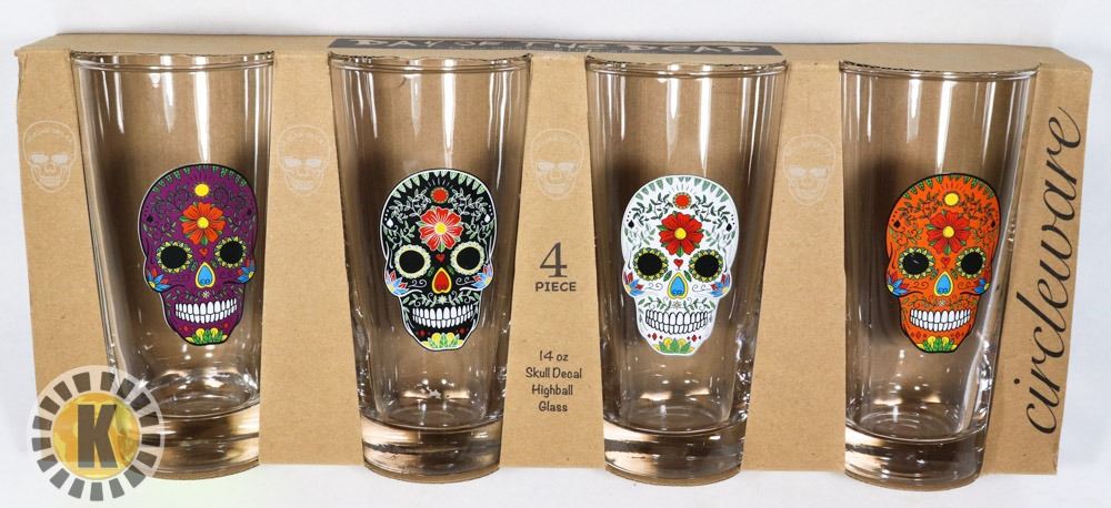 NEW 4 PC SUGAR SKULL THEME 14OZ HIGHBALL GLASSES