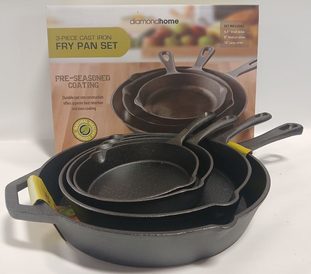 INCLUDES: 12" (W/ HELPER HANDLE), 10", 8" & 6.5" PANS. DUAL