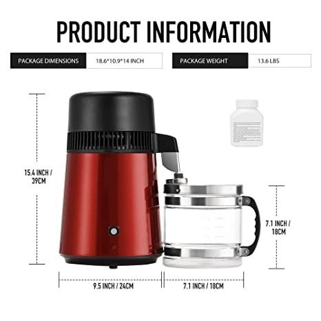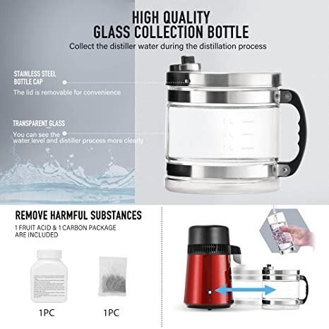 WATER DISTILLER FILTER MACHINE WITH GLASS COLLECTION CARAFE, PARTS CONFIRMED AND SEALED, MANUAL INCLUDED, AMZ SES