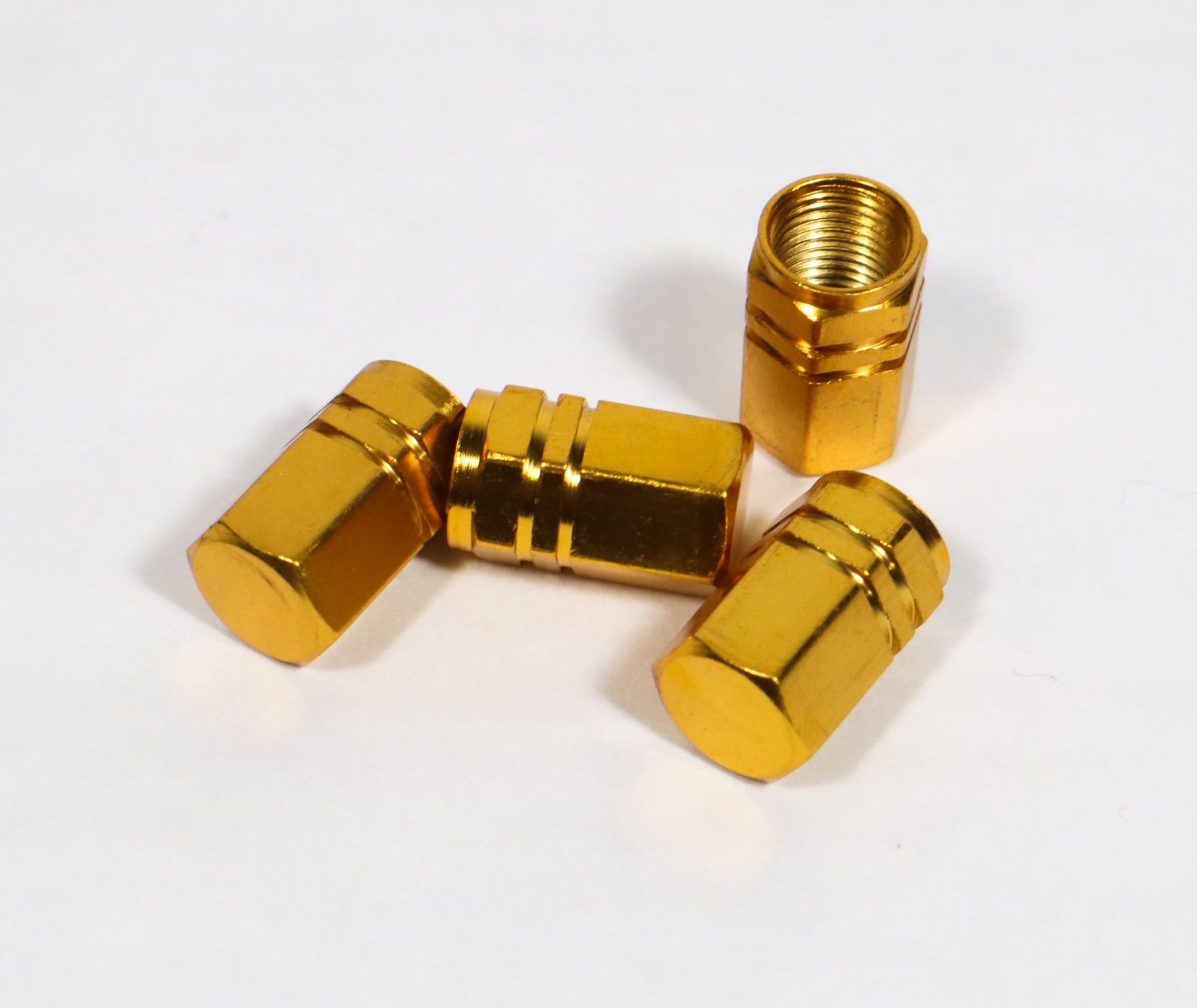 NEW 4PC GOLD TONE TIRE VALVE COVERS