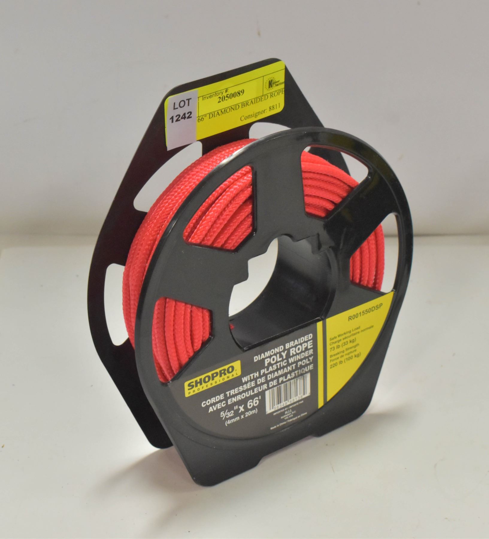NEW 5/32 X 66" DIAMOND BRAIDED ROPE RED