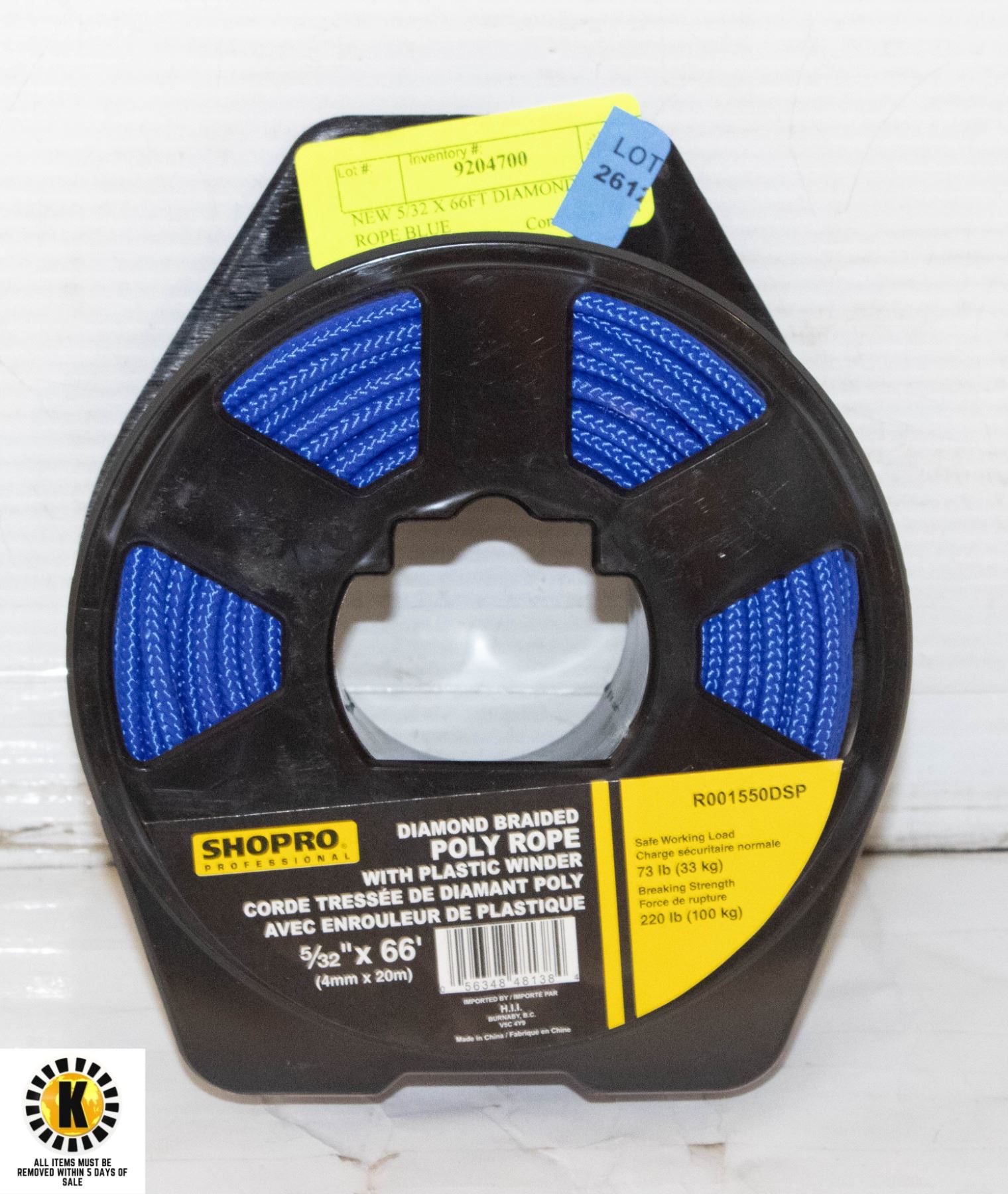 NEW 5/32 X 66FT DIAMOND BRAIDED ROPE BLUE
