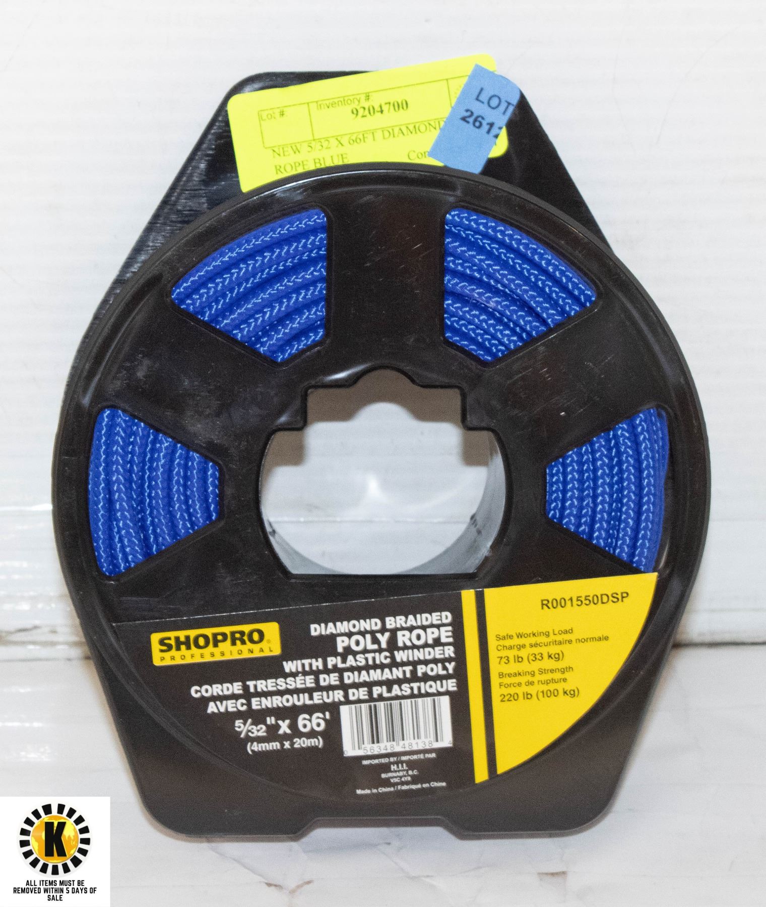 NEW 5/32 X 66FT DIAMOND BRAIDED ROPE BLUE