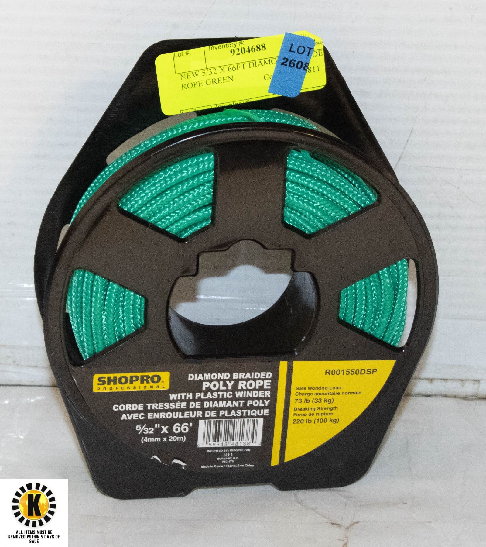 NEW 5/32 X 66FT DIAMOND BRAIDED ROPE GREEN