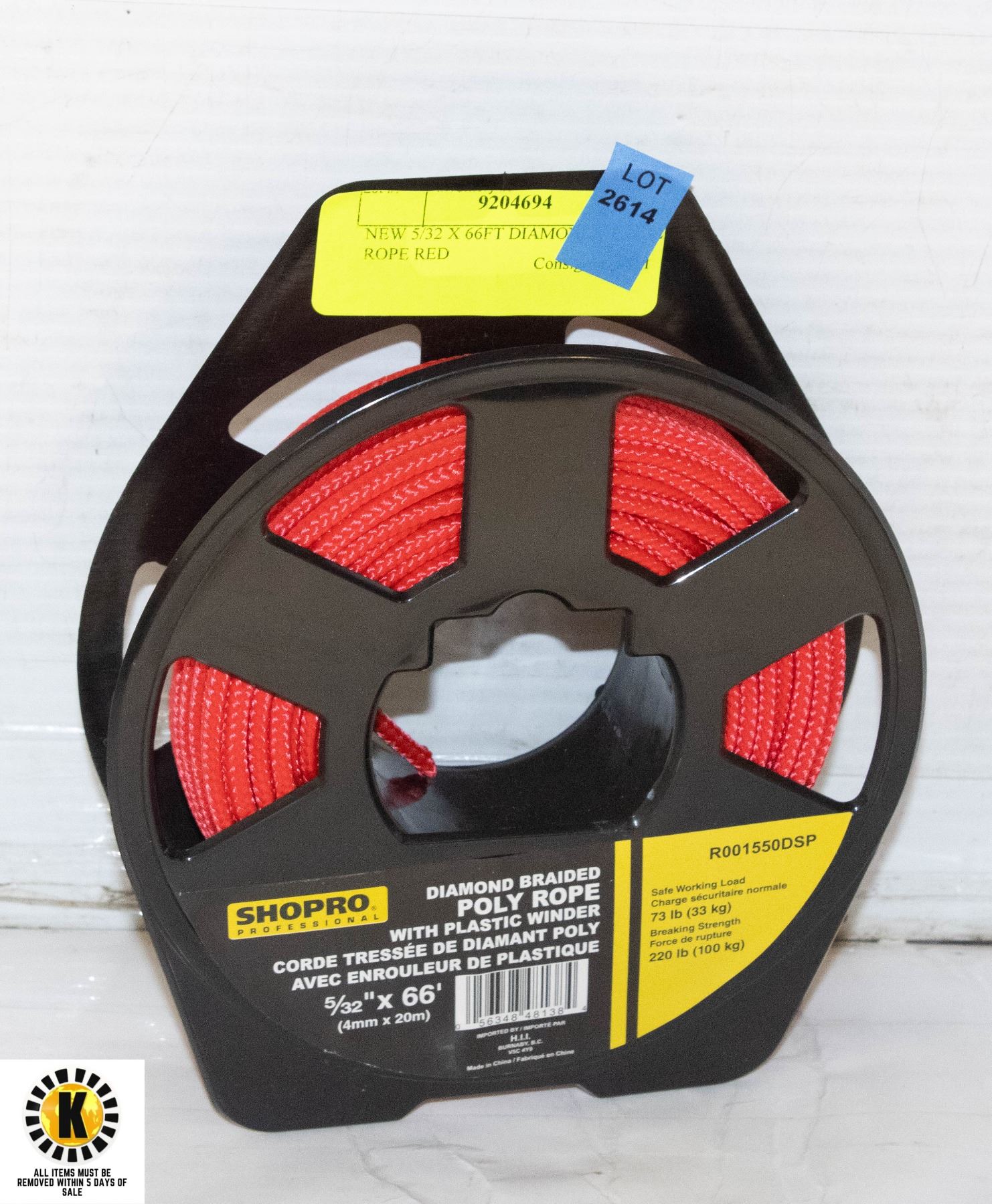 NEW 5/32 X 66FT DIAMOND BRAIDED ROPE RED