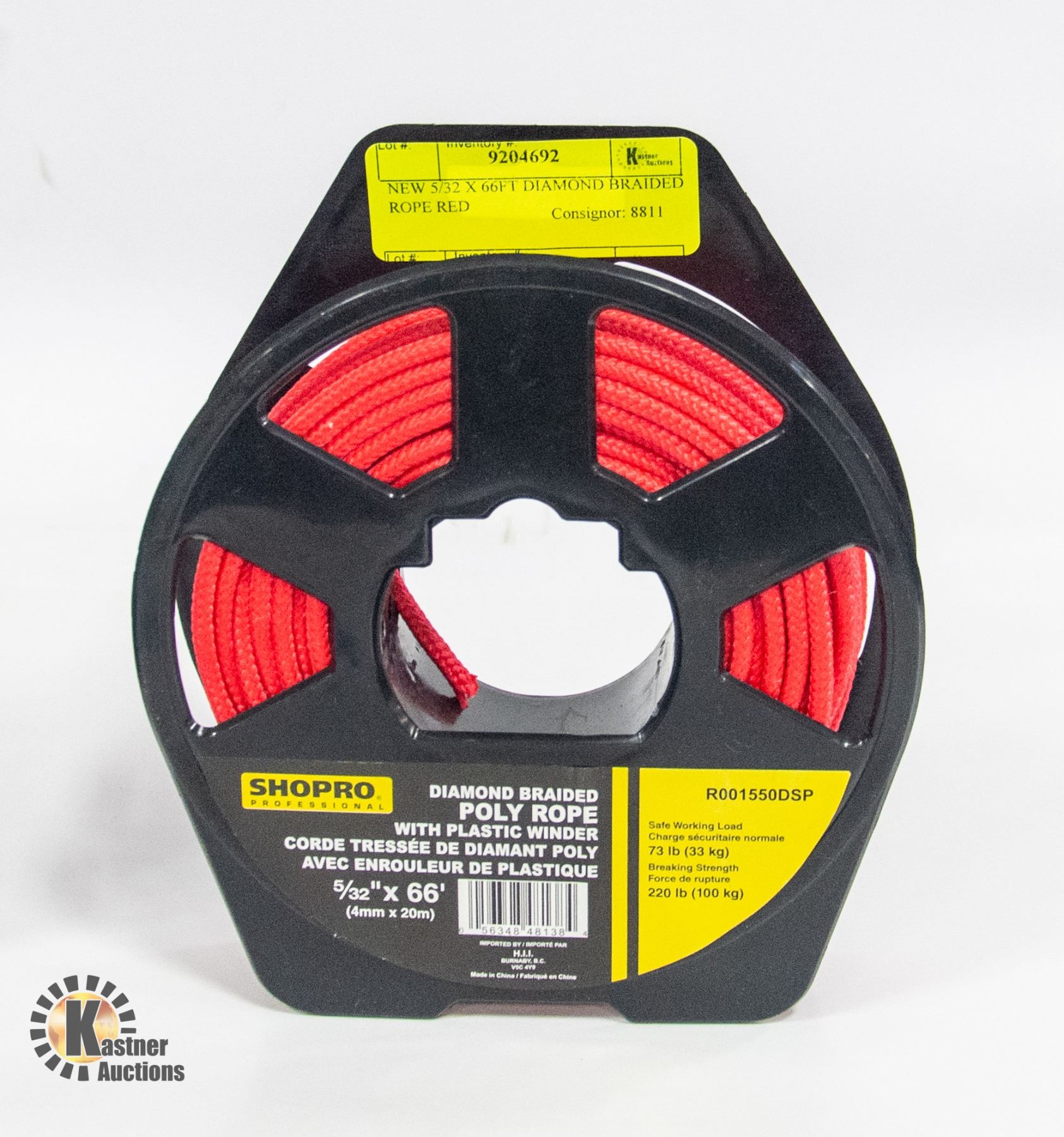 NEW 5/32 X 66FT DIAMOND BRAIDED ROPE RED