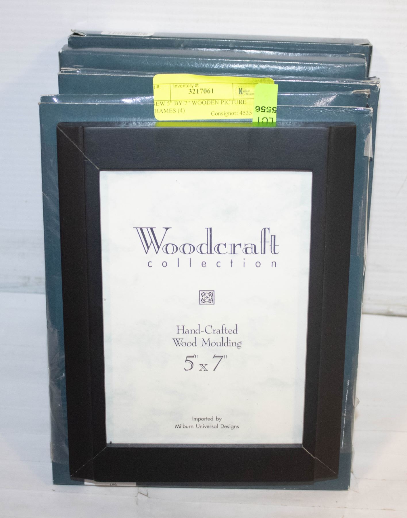 NEW 5" BY 7" WOODEN PICTURE FRAMES (4)
