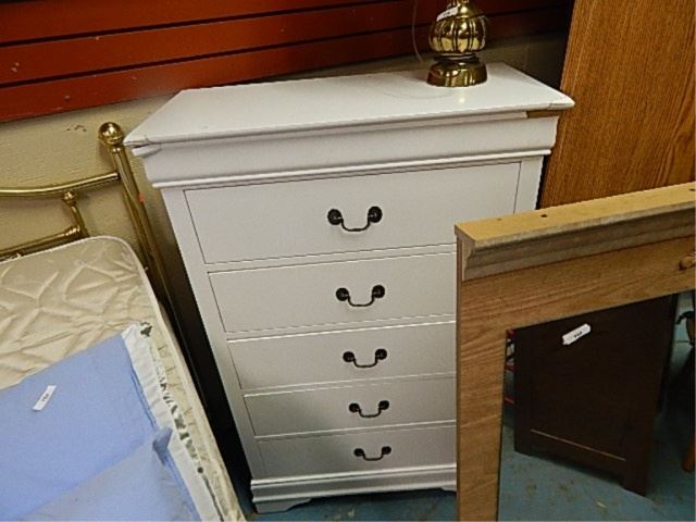 NEW - 5 DRAWER HIGH BOY DRESSER - AS-IS - WHITE