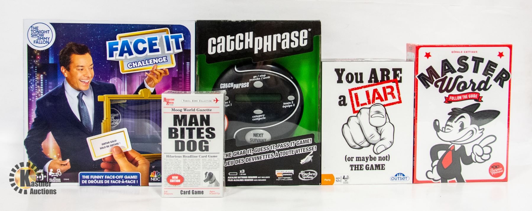 CHALLENGE, OUTSET YOU ARE A LIAR, UNIVERSITY GAMES MAN BITES DOG CARD GAME, CATCHPHRASE & MASTERWORD **ALL ITEMS MUST BE REMOVED BY 5PM SATURDAY, OCTOBER 28TH 2023. ALL REMAINING ITEMS WILL BE SUBJECT TO A $6.00 PER DAY STORAGE CHARGE. ANY ITEMS REMAINING AFTER MONDAY, NOVEMBER 13TH, 2023 WILL BE CONSIDERED FORFEITED. NO REFUNDS WILL BE ISSUED FOR FORFEITED ITEMS. TO SCHEDULE A PICK UP APPOINTMENT CLICK HERE