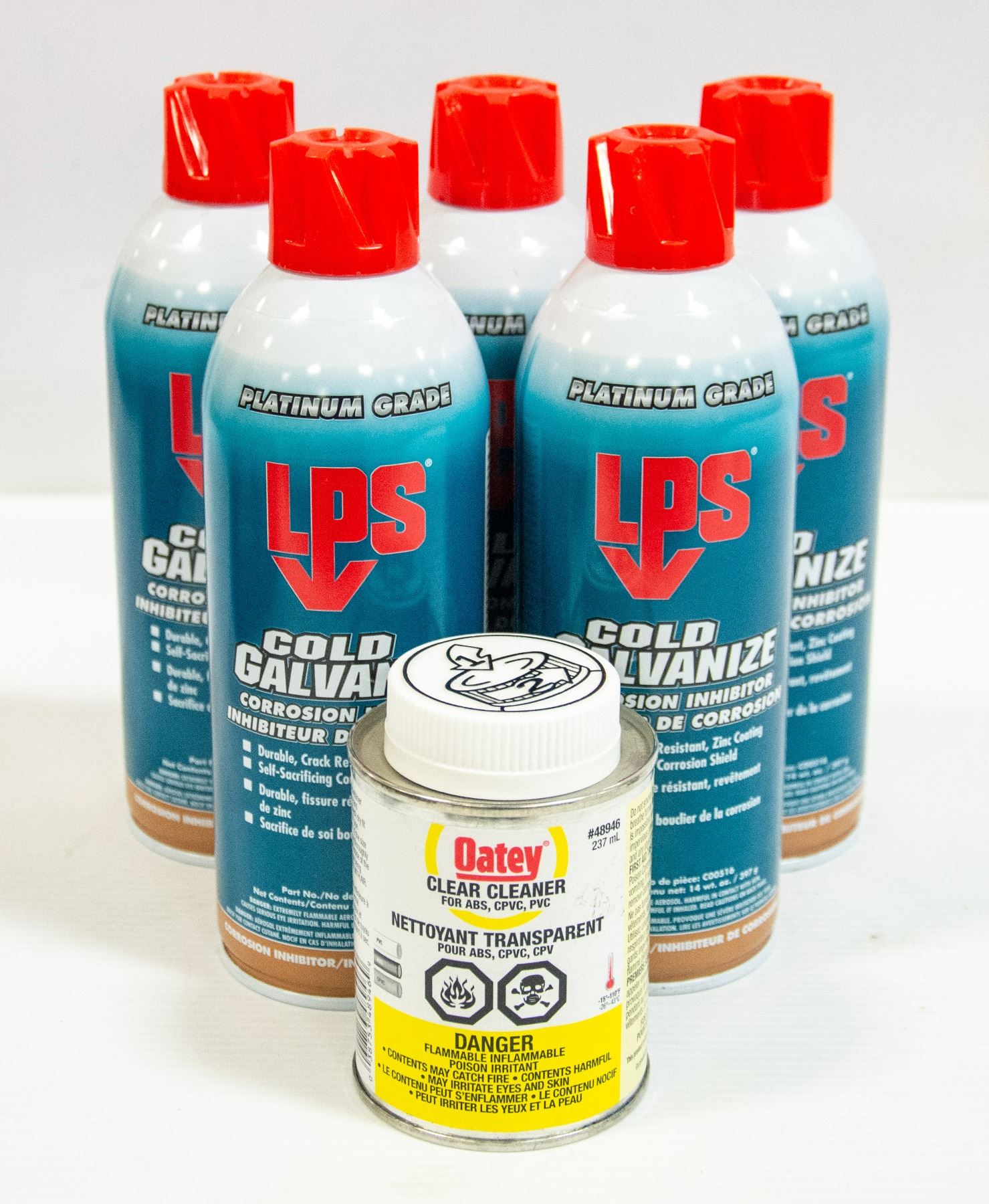 COLD GALVANIZE CORROSIM INHIBITOR (LIGHT GREY) AEROSOL CANS 336 ML W/OATLEY CLEAR CLEANER ABS/PVC/CVPAC 237 ML**ALL ITEMS MUST BE REMOVED BY 5PM MONDAY, OCTOBER 10TH, 2022. ALL REMAINING ITEMS WILL BE SUBJECT TO A $6.00 PER DAY STORAGE CHARGE. ANY ITEMS REMAINING AFTER MONDAY, OCTOBER 24TH, 2022 WILL BE CONSIDERED FORFEITED. NO REFUNDS WILL BE ISSUED FOR FORFEITED ITEMS. TO SCHEDULE A PICK UP APPOINTMENT CLICK HERE