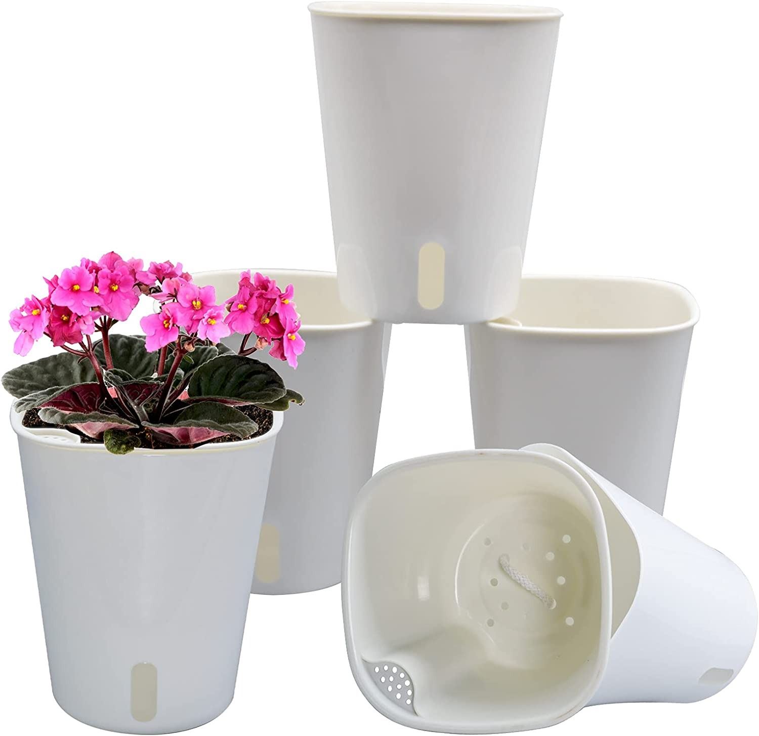 NEW 5 PACK OF SELF WATERING 6" PLANTERS, WHITE