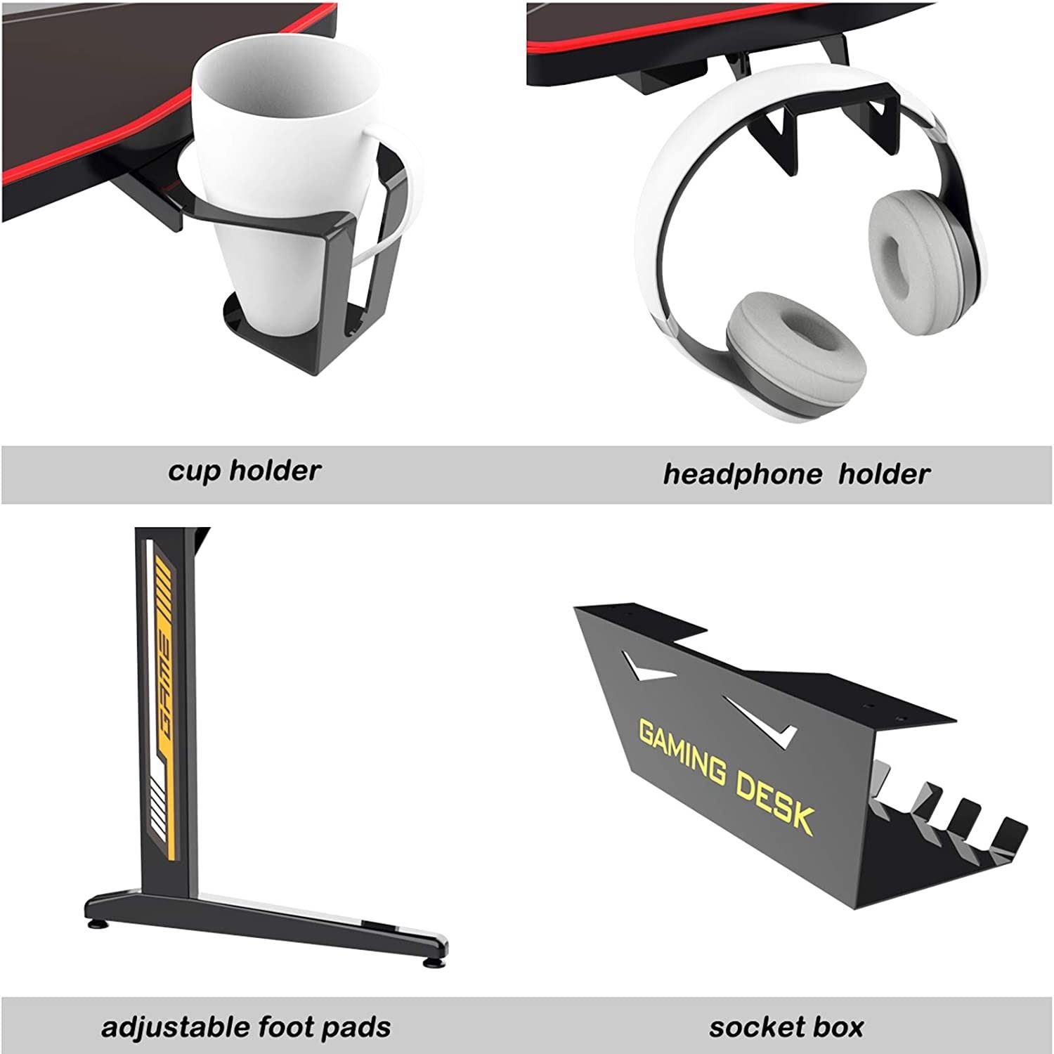 MADE BY SOGES POWER, GAME STATION WITH FULL COVERED MOUSE PAD TOP, CUP HOLDER, HEADPHONE HOOK, BLACK, MODEL: SPYT-TF-1-CA, TESTED, ALL PARTS CONFIRMED, INSTRUCTION MANUAL INCLUDED, AMZ SES