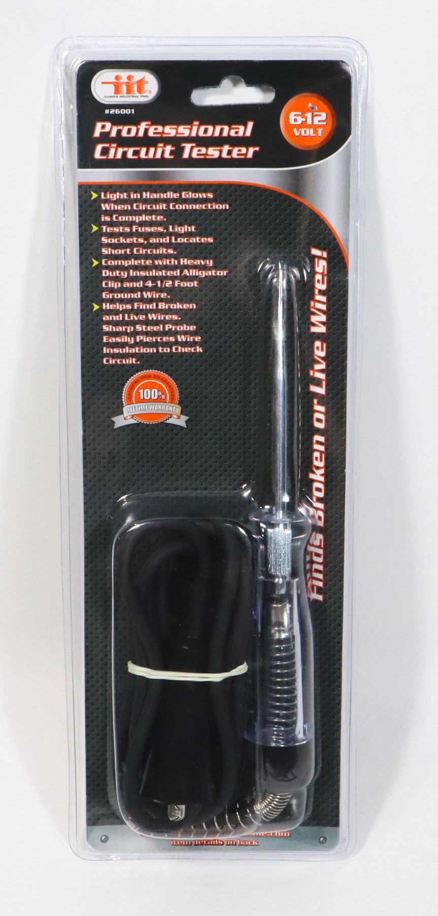 LIGHT IN HANDLE GLOWS WHEN CIRCUIT CONNECTION IS COMPLETE. TESTS FUSES, LIGHT SOCKETS, AND LOCATES SHORT CIRCUITS