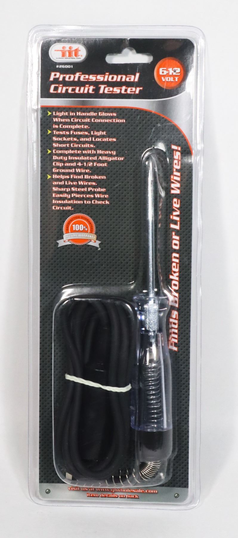 LIGHT IN HANDLE GLOWS WHEN CIRCUIT CONNECTION IS COMPLETE. TESTS FUSES, LIGHT SOCKETS, AND LOCATES SHORT CIRCUITS