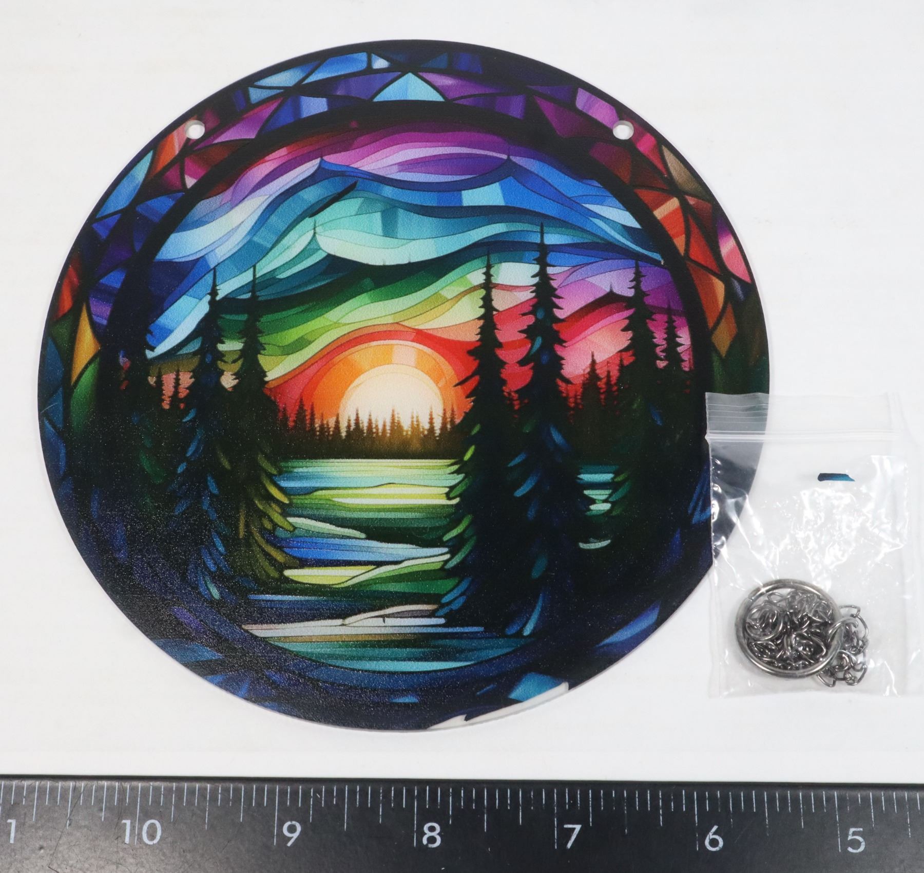CATCHER WITH CHAIN FOR HANGING. PROTECTIVE STICKER ON ONE SIDE THAT MUST BE REMOVED FOR FULL EFFECT