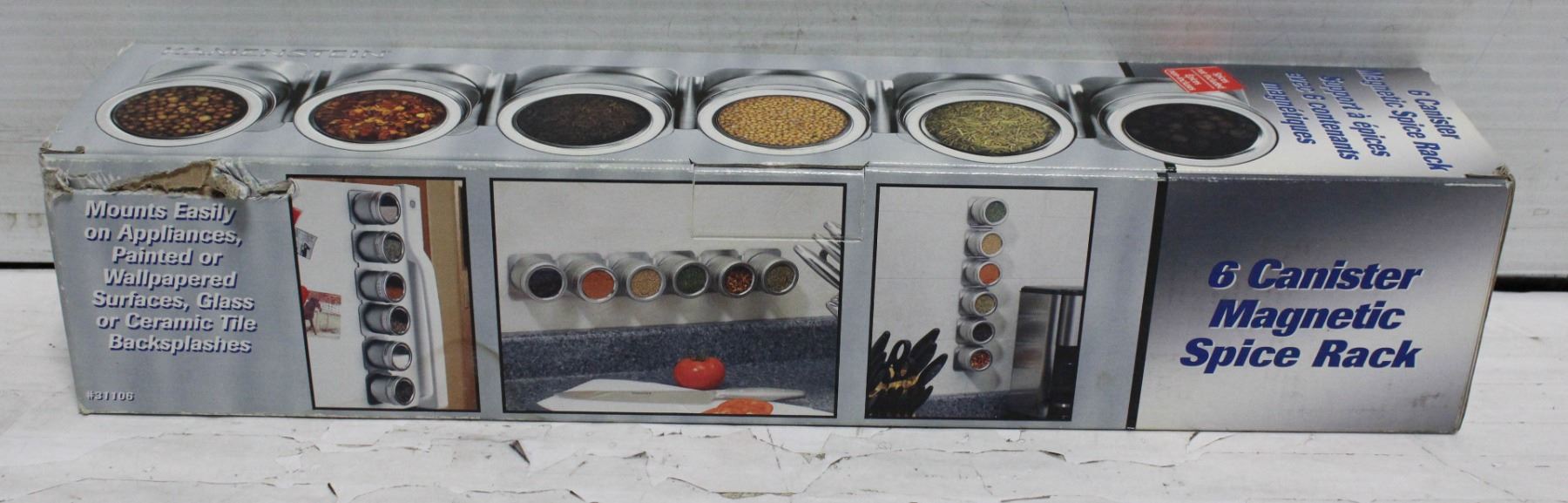 NEW 6 CANISTER MAGNETIC SPICE RACK