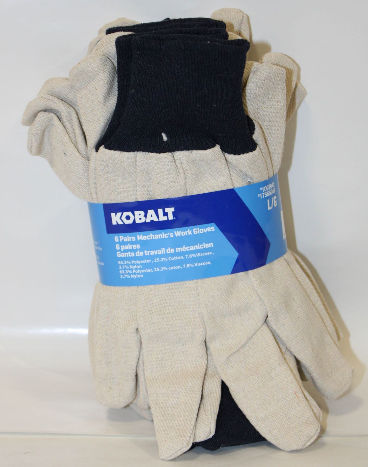 NEW 6 PACK KOBALT COTTON WORKGLOVES
