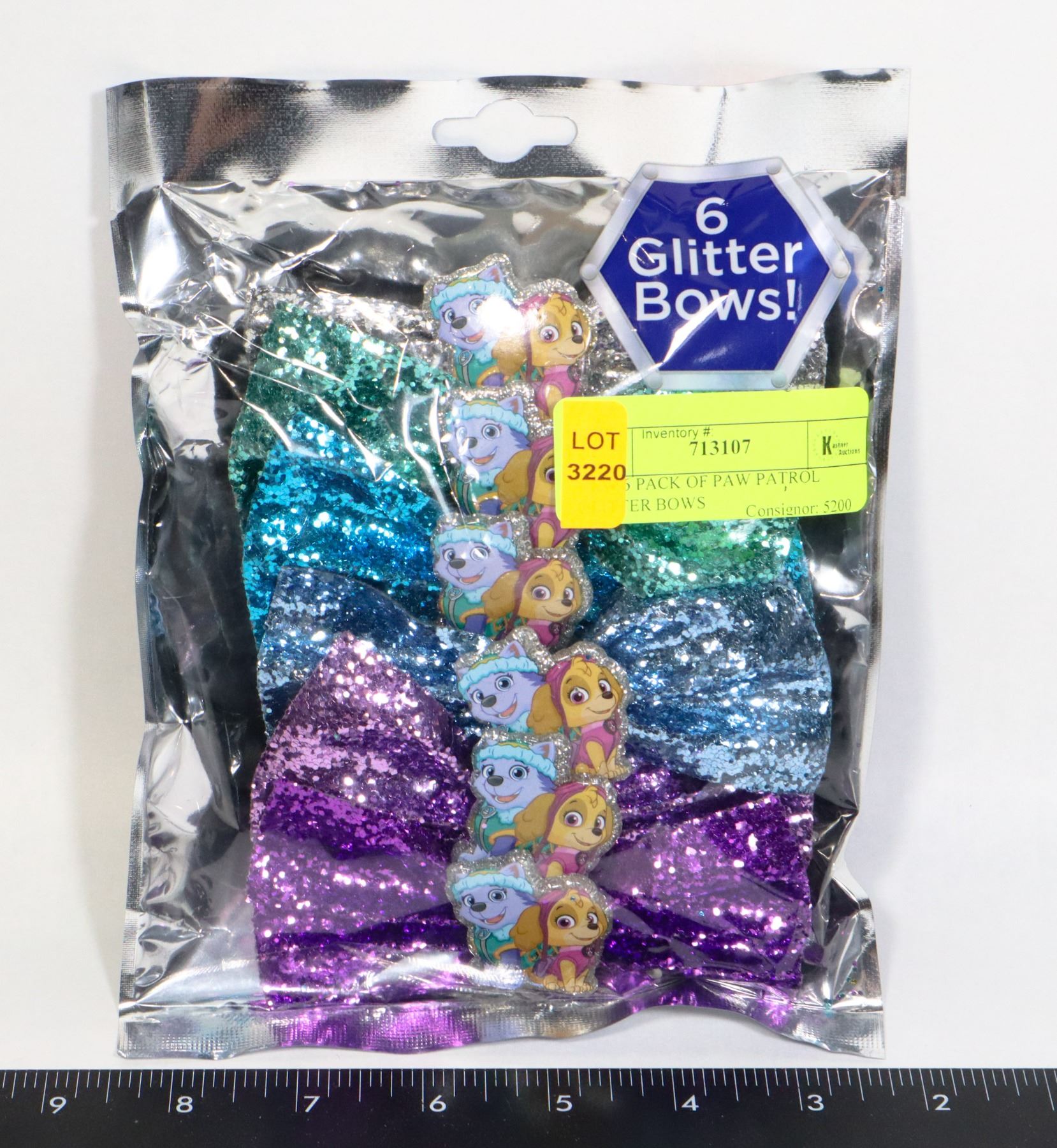 NEW 6 PACK OF PAW PATROL GLITTER BOWS