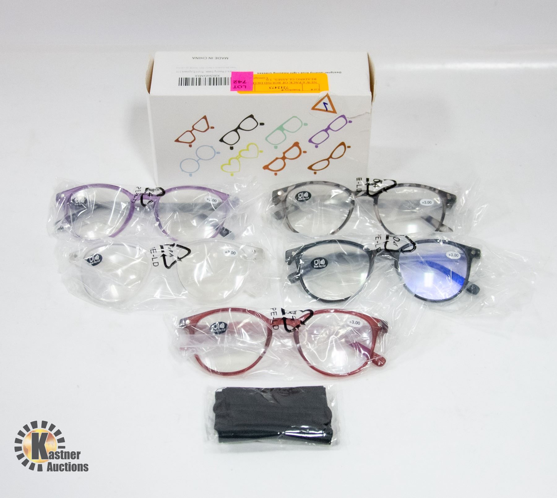 NEW 6 PACK OF ROUND DESIGNER READING GLASSES, 3.0