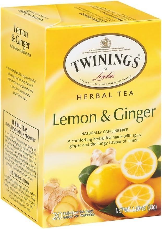 NEW 6 PACK OF TWINNINGS HERBAL TEA, LEMON & GINGER
