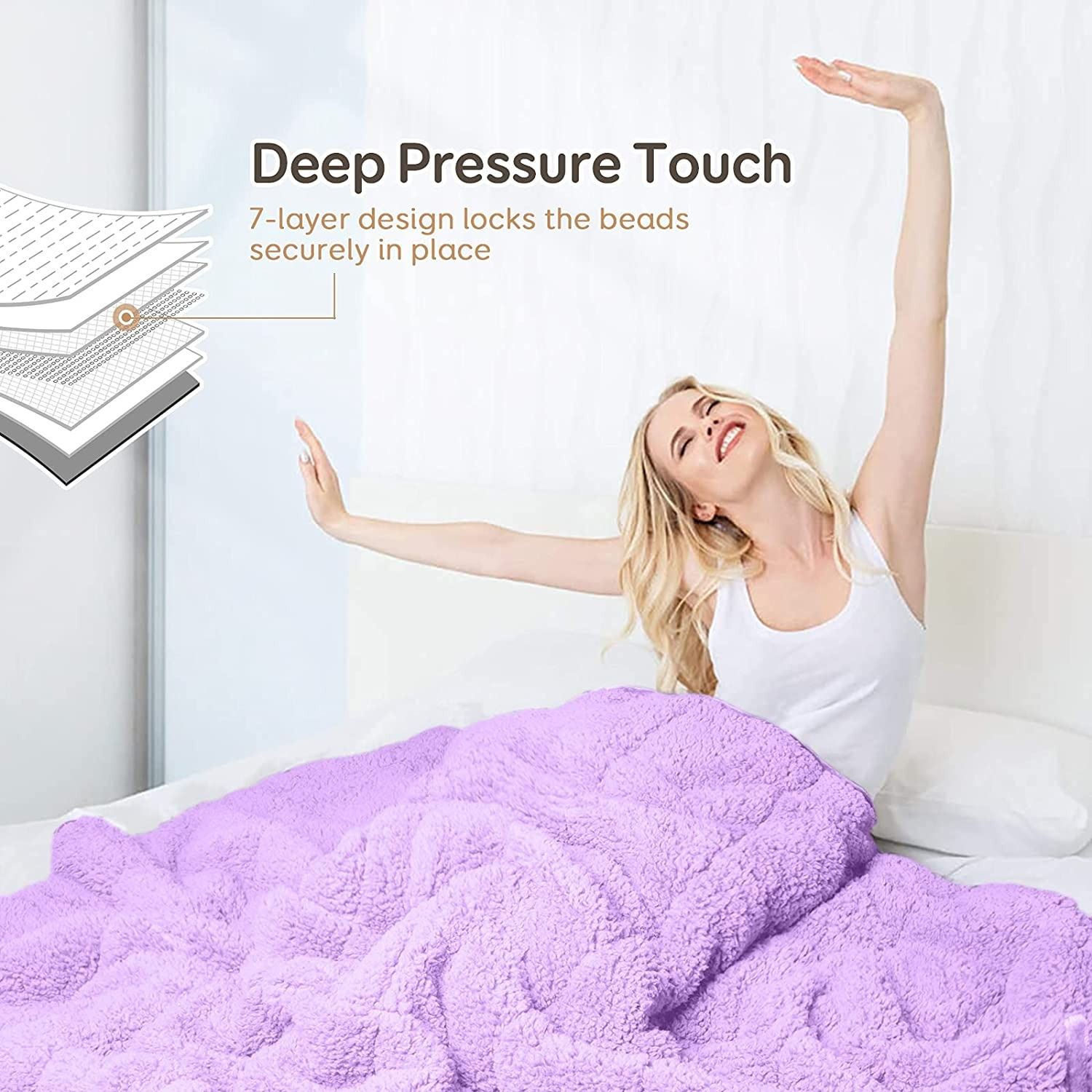BLANKET, 15LBS FILL WEIGHT, CERAMIC BEAD FILL, ULTRA SOFT SHAG SIDE, SILKY SMOOTH SOFT SIDE, MADE BY AND BEYOND