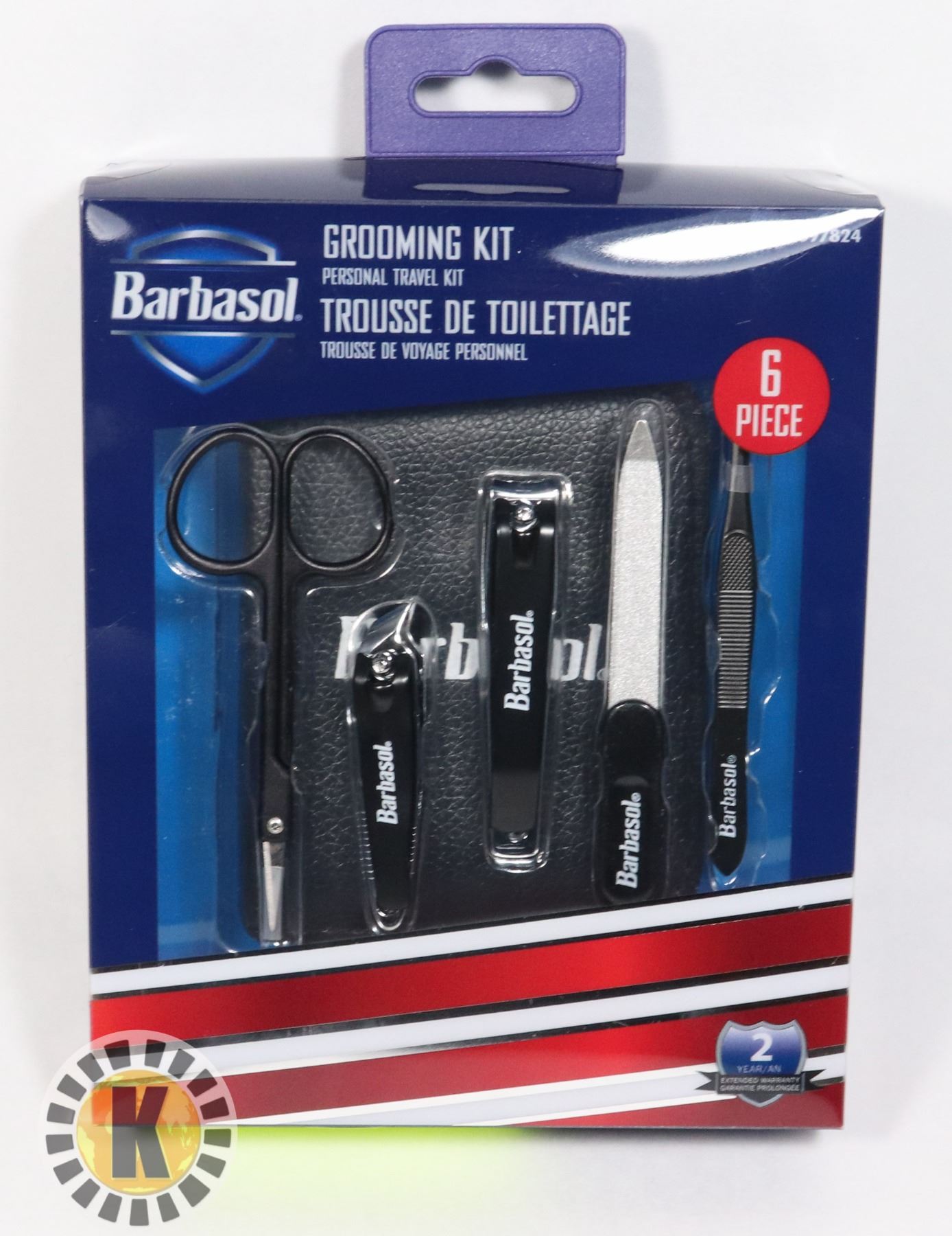 INCLUDES SAFETY SCISSORS, LARGE NAIL CLIPPER, SLANTED NAIL CLIPPER, NAIL FILE POINTED TWEEZERS, TRAVEL CASE
