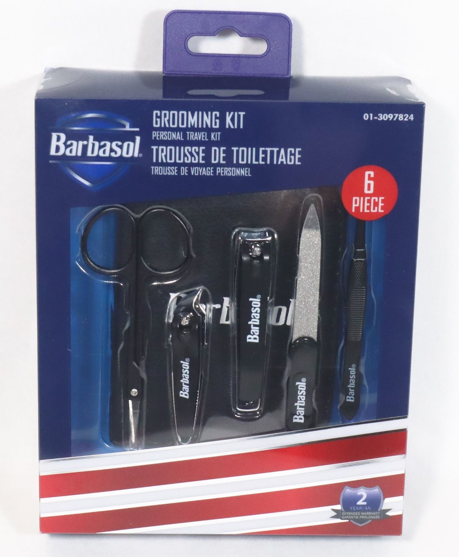INCLUDES SAFETY SCISSORS, LARGE NAIL CLIPPER, SLANTED NAIL CLIPPER, NAIL FILE POINTED TWEEZERS, TRAVEL CASE