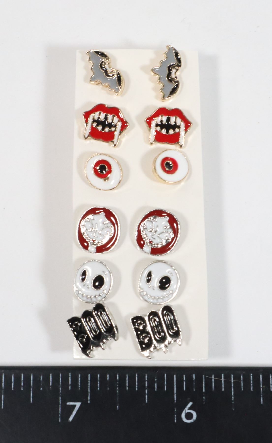 NEW 6PCE SPOOKY HALLOWEEN THEME STUD EARRINGS