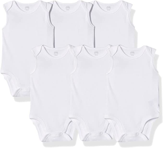 NEW 6PK OF AMAZON ESSENTIALS BABY SLEEVELESS WHITE